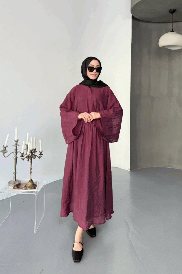 Etek beli lastiklidir, üst yarasa koldur, etek astarlı ve ceplidir 36-44 arası uyumludur etek belinde ip mevcuttur ,Bluz yapıştırma taşlıdır.
