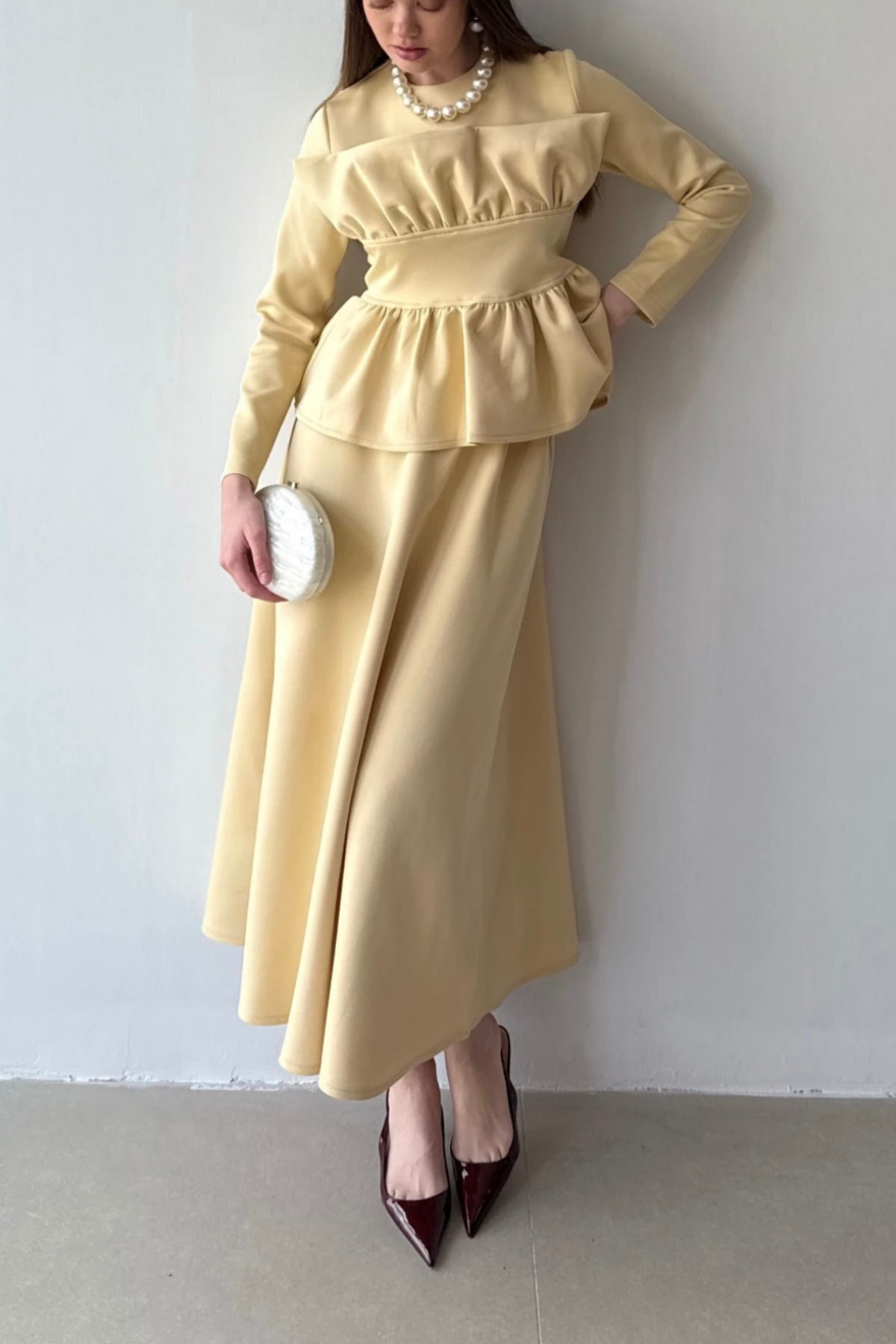 Dik Pliseli Etekli Takım-Mürdüm